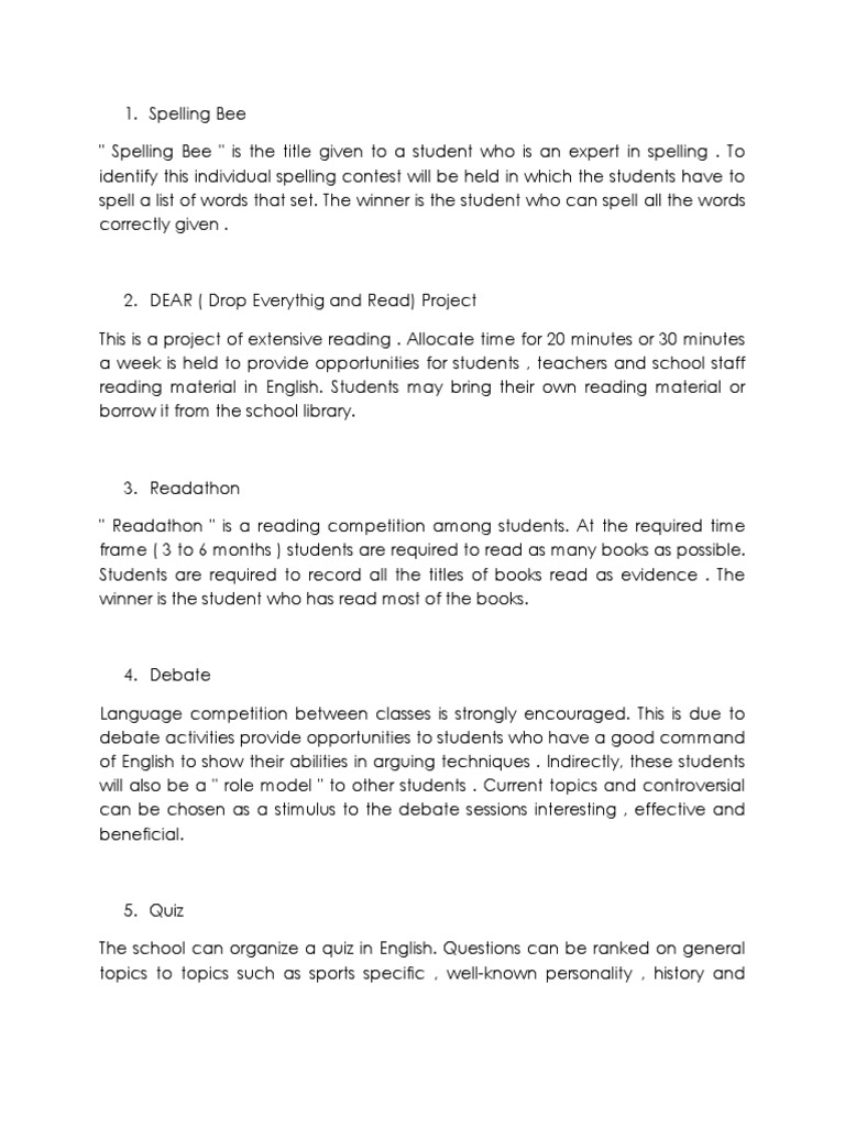 Penganjur acara membantu. Secara garis besar kegiatan satuan pendidikan. To encourage and increase the usage of English among pupils.